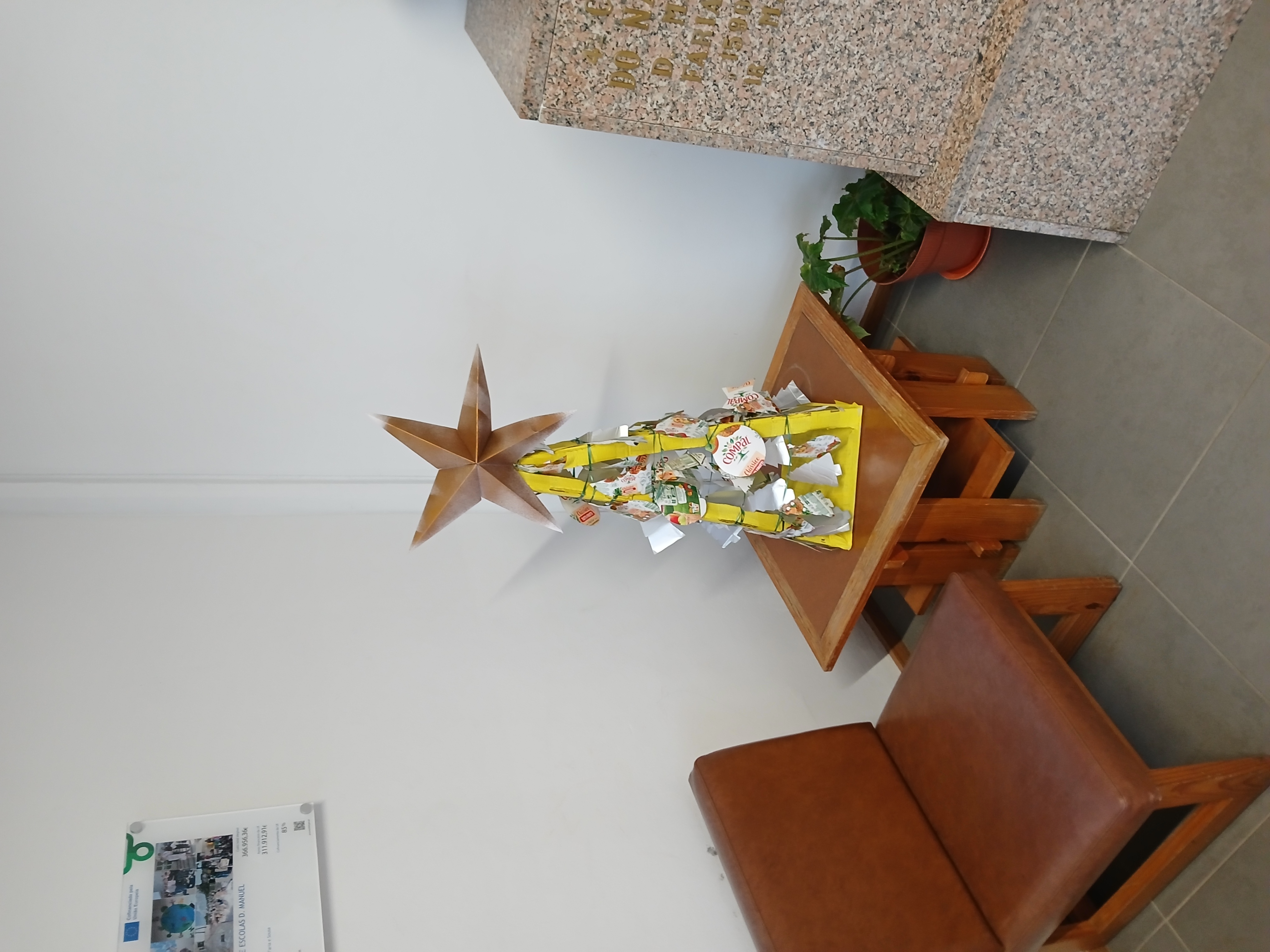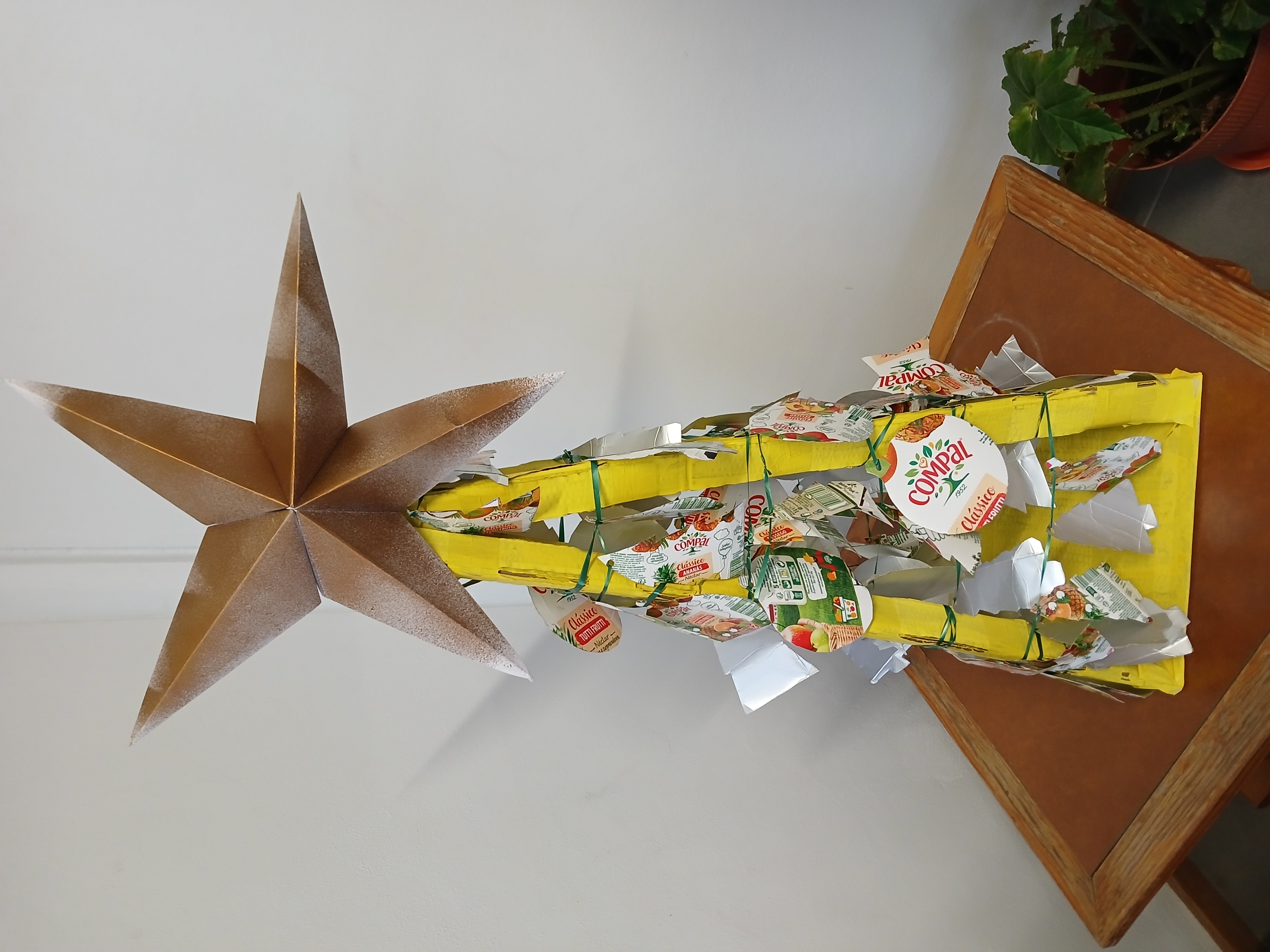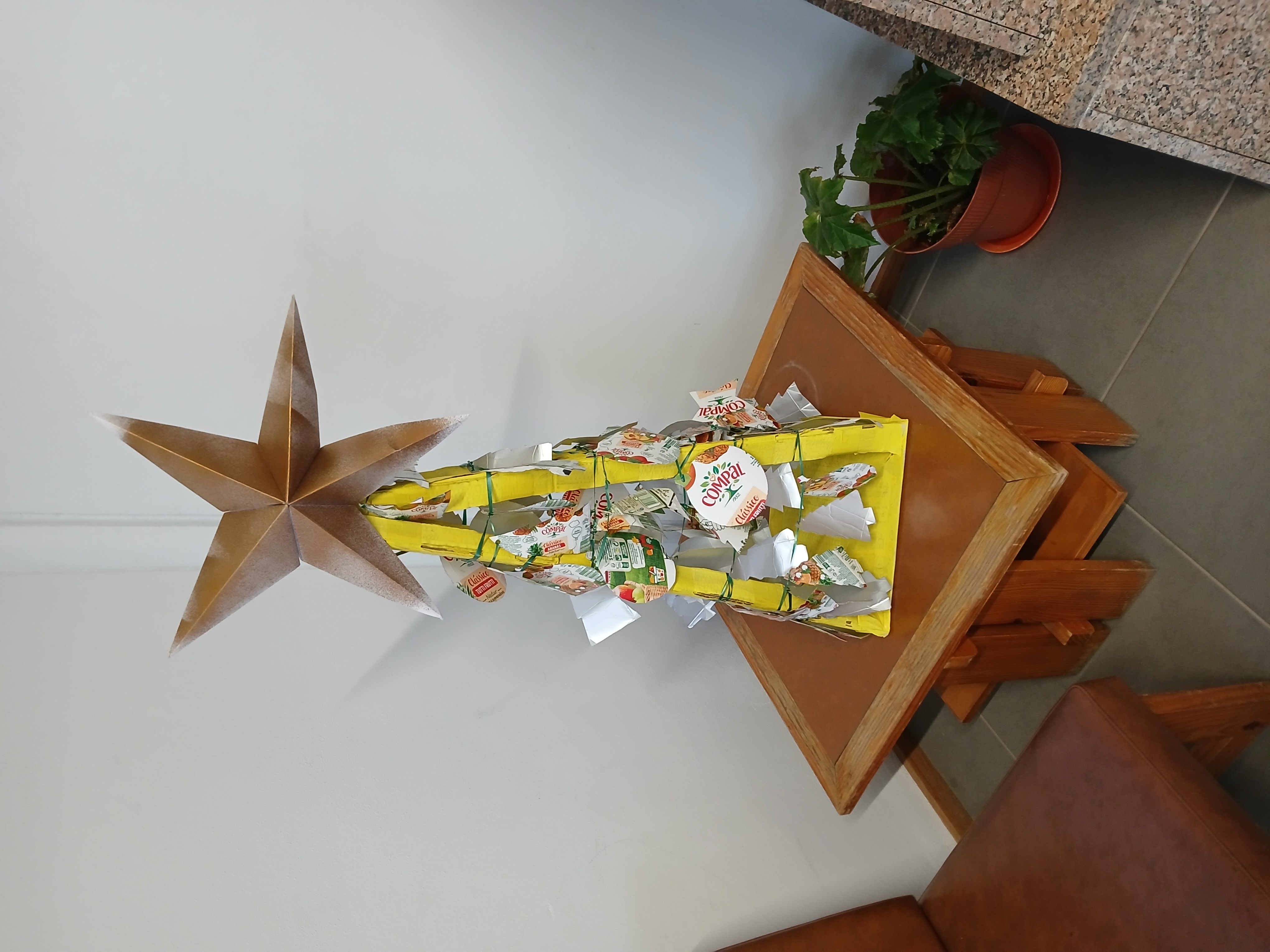 modo, os alunos do 5ºA, construíram uma árvore de Natal amarela, com