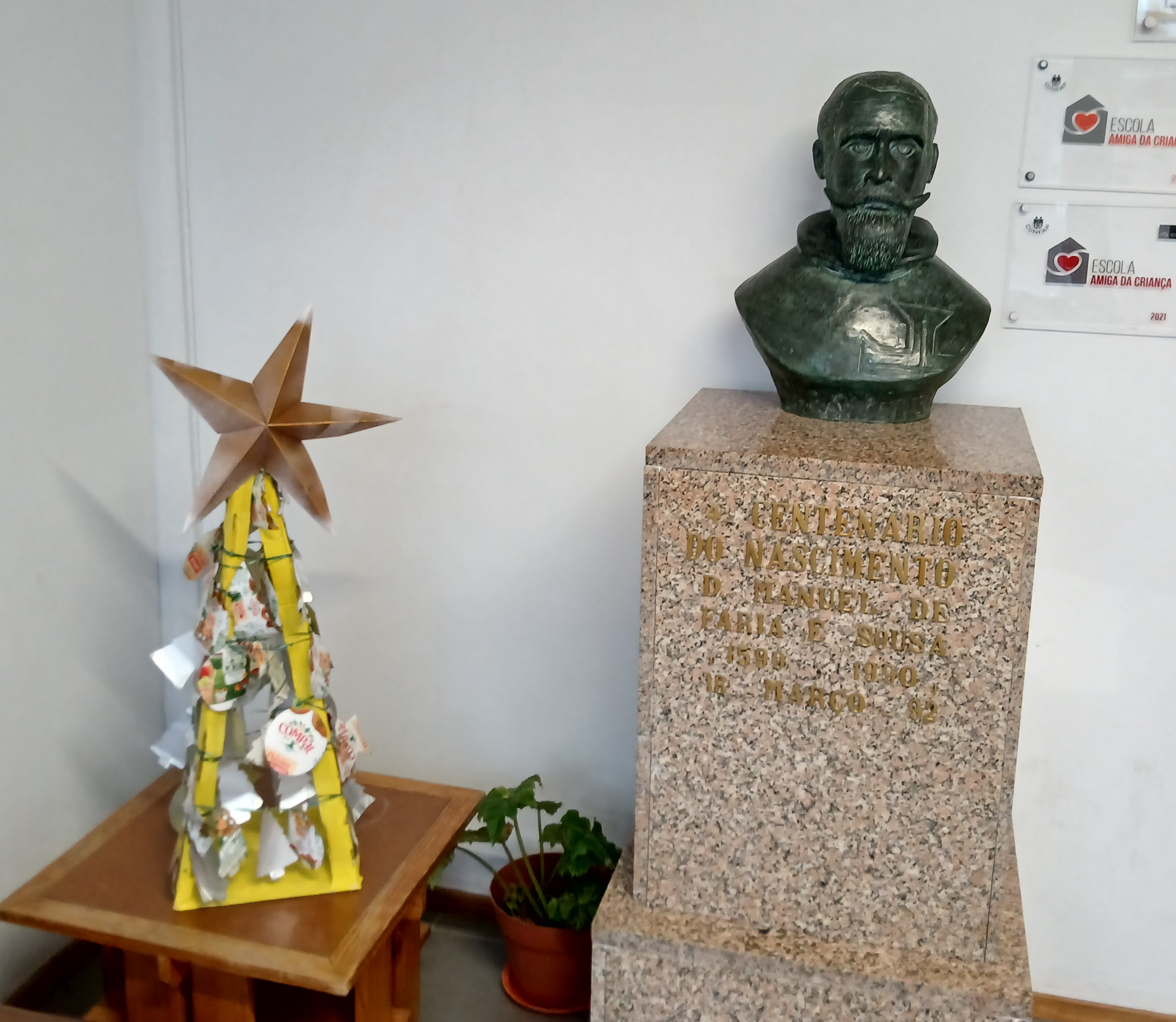 A árvore foi colocada na entrada da Escola E.B. 2,3 D. Manuel de Faria e Sousa.