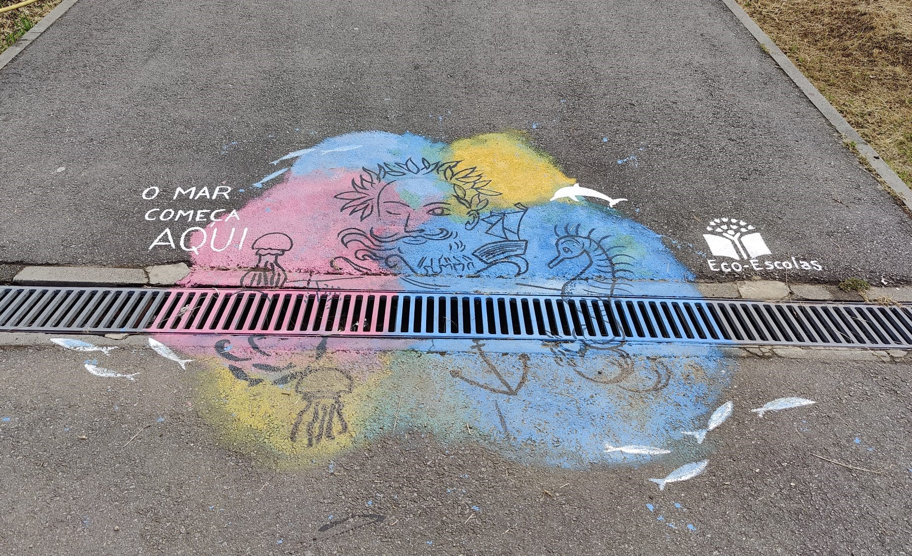 No âmbito do Projeto Eco-Escolas/Clube do Ambiente, na atividade "O Mar começa Aqui" os alunos do Clube de Artes, sob a orientação da professora Helena Meireles, fizeram a pintura: "Camões e o seu universo de criaturas marinhas", na sarjeta perto do pavilhão azul.