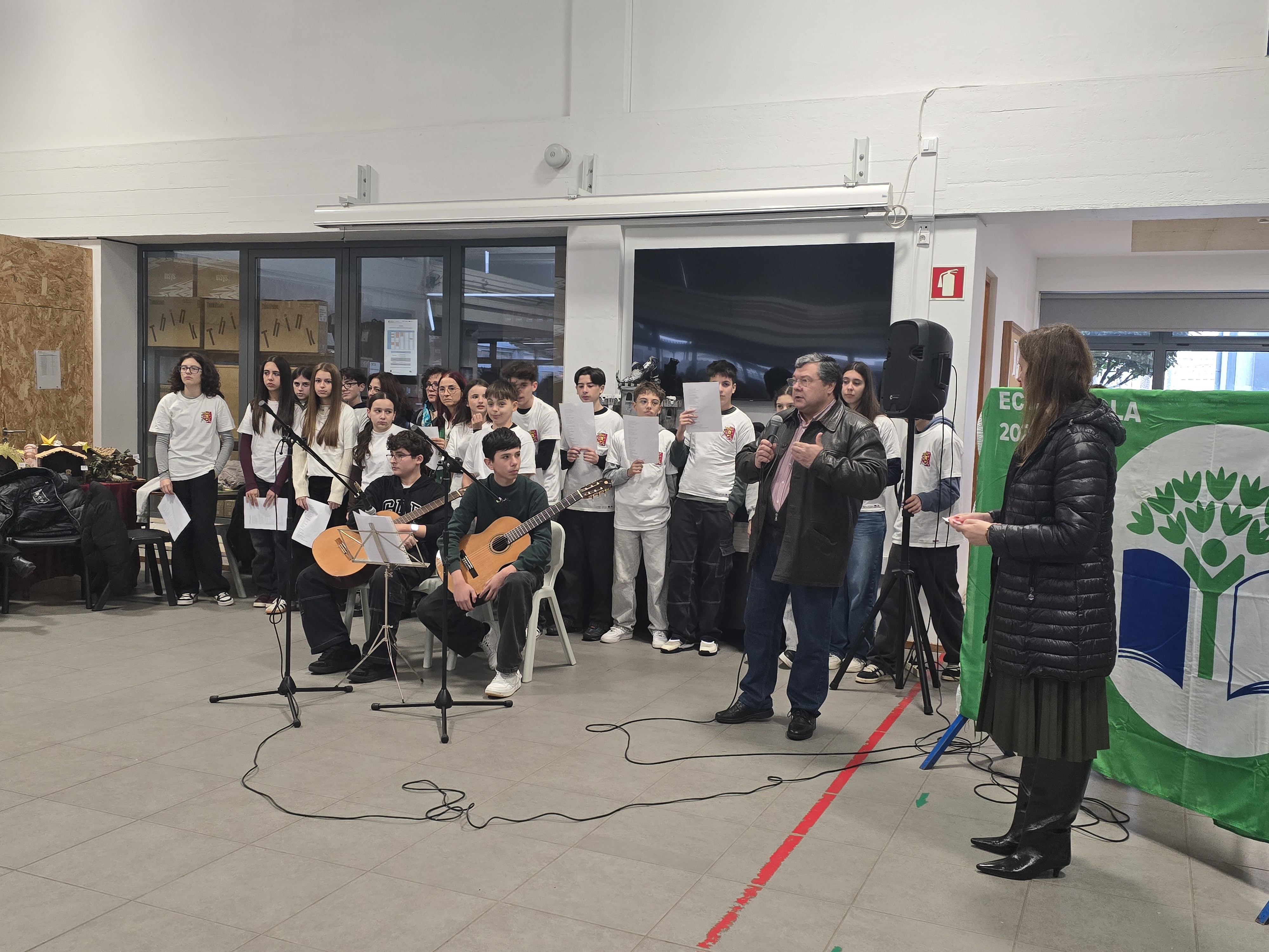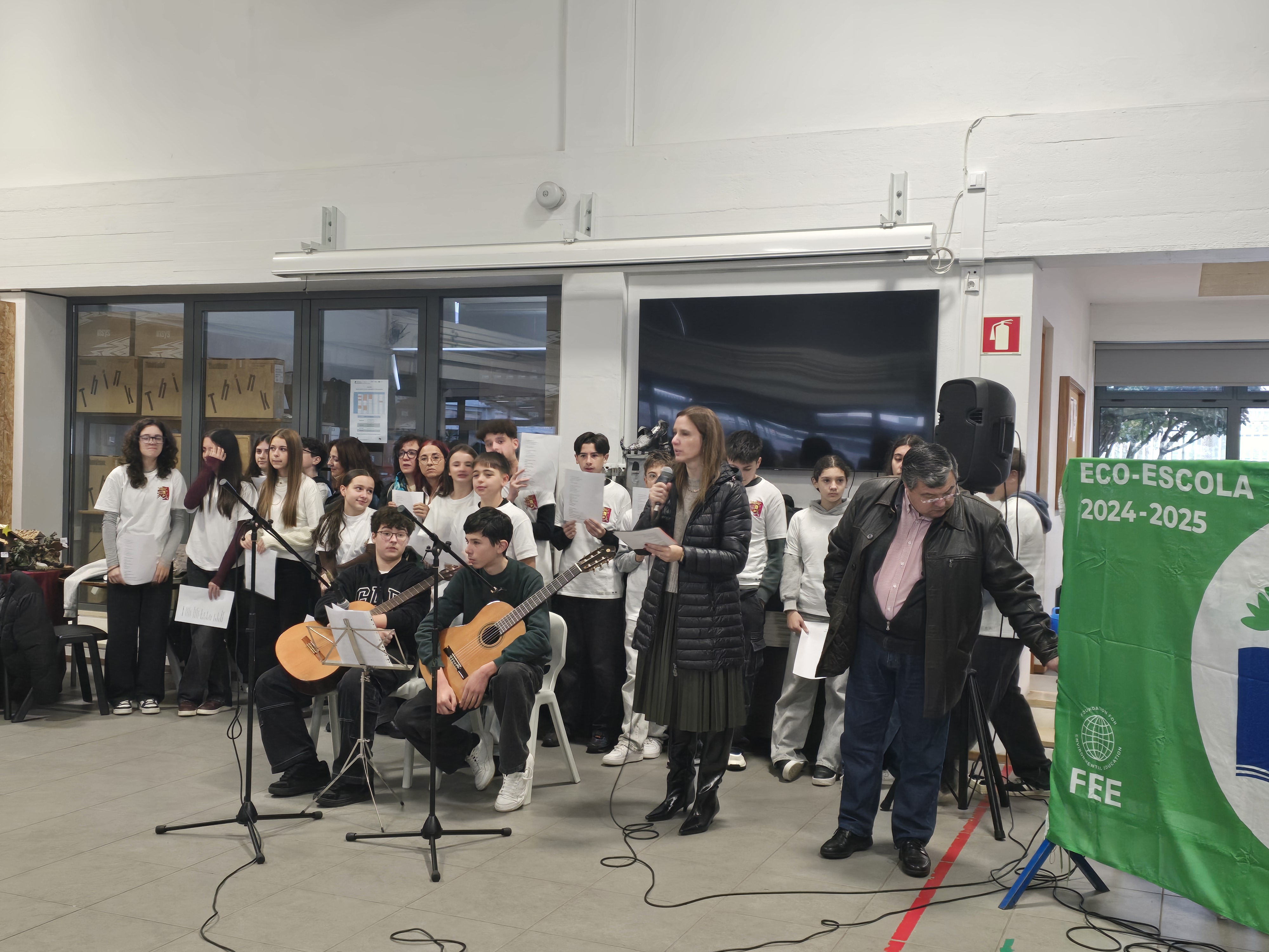 No dia 9 de dezembro, realizou-se na nossa Escola a cerimónia do Hastear da Bandeira Verde do Programa Eco-Escolas, referente ao ano letivo de 2024/2025. Esta iniciativa tem como objetivo apoiar, encorajar e reconhecer o trabalho das escolas no âmbito da Educação Ambiental para a sustentabilidade.