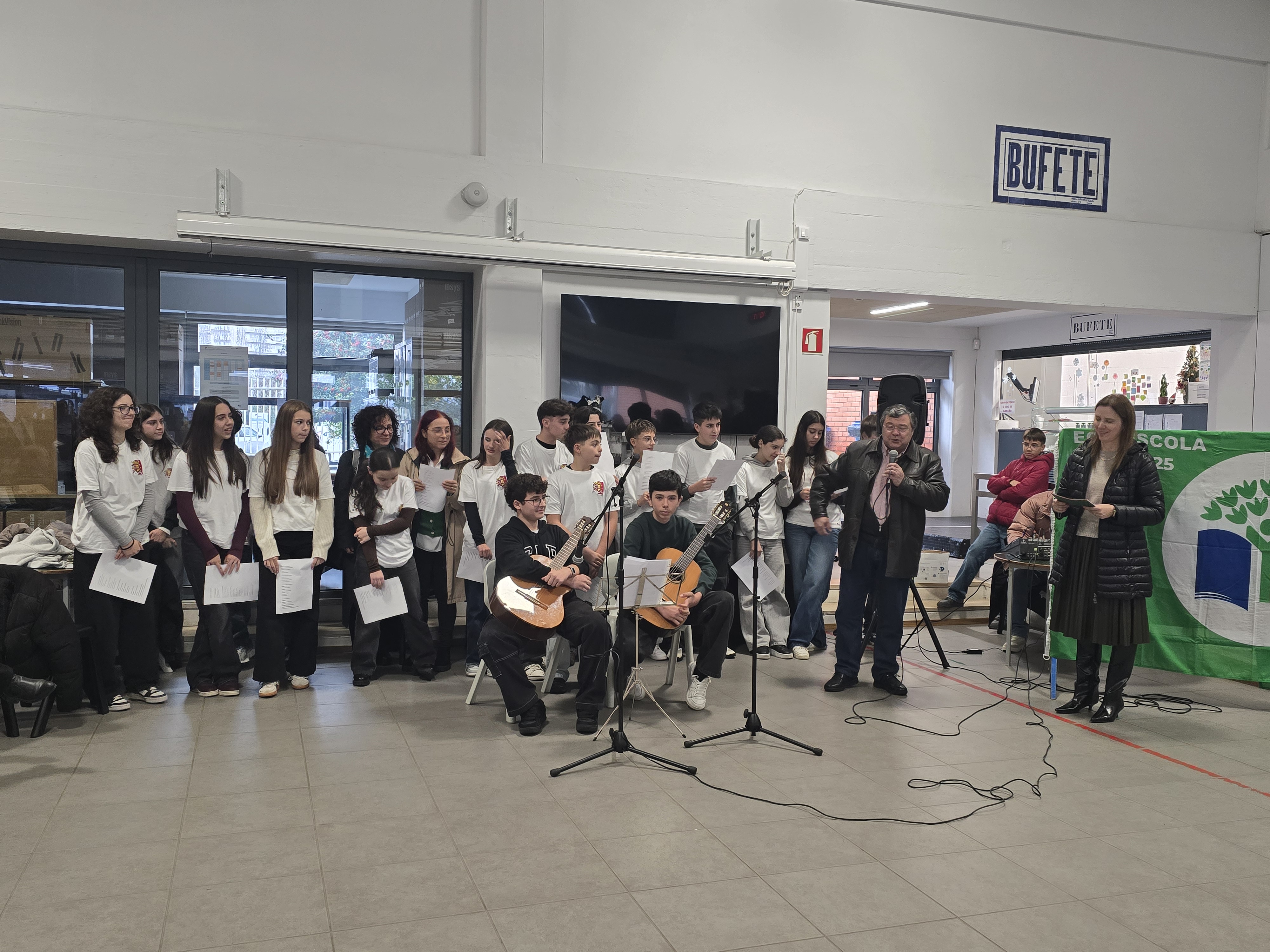 Manifestamos a nossa profunda gratidão a todos pela colaboração, empenho e contributo, com um agradecimento especial aos alunos da turma do 9.º A, que nos brindaram com um extraordinário momento musical ao cantarem o Hino do Clube do Ambiente e principalmente aos alunos, Afonso Ferreira e Paulo Moreira que tocaram duas peças musicais na guitarra clássica.